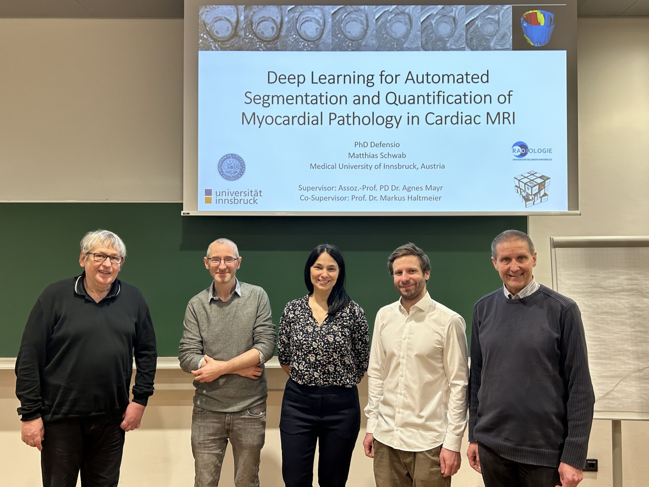 We congratulate Matthias Schwab, who successfully defended his dissertation on 21 January 2026. His doctoral thesis is entitled “Deep Learning for Automated Segmentation and Quantification of Myocardial Pathology in Cardiac MRI“